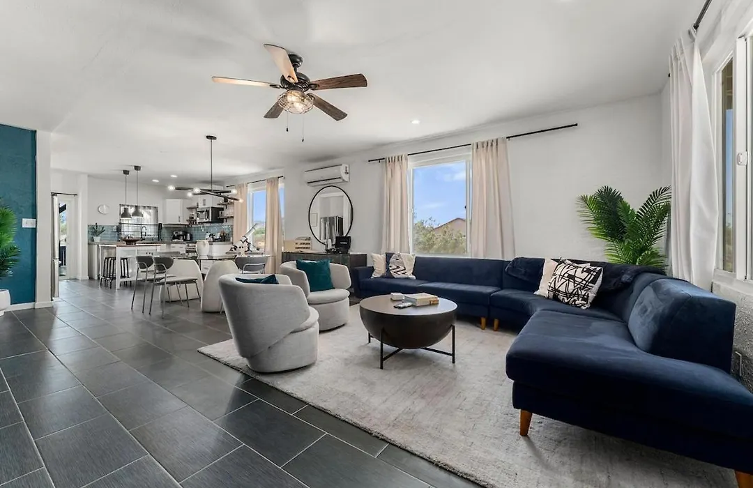 Situated approximately 10 minutes by car from Hi-Desert Nature Museum, the 2-bedroom Desert Artist Oasis- Firepit - Spa - 5 Min To Joshua Tree Yucca Valley villa provides access to numerous tourist attractions in the area.